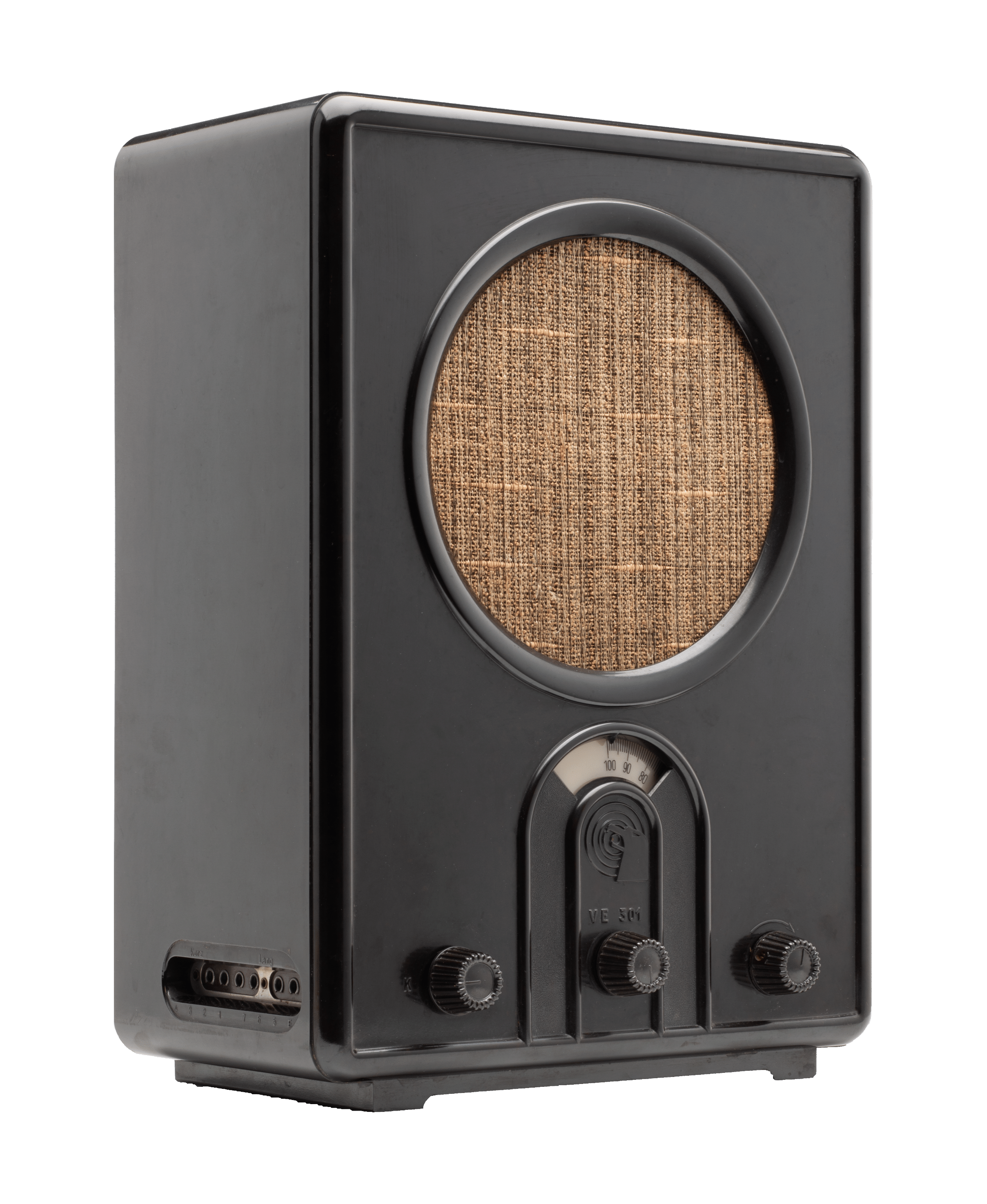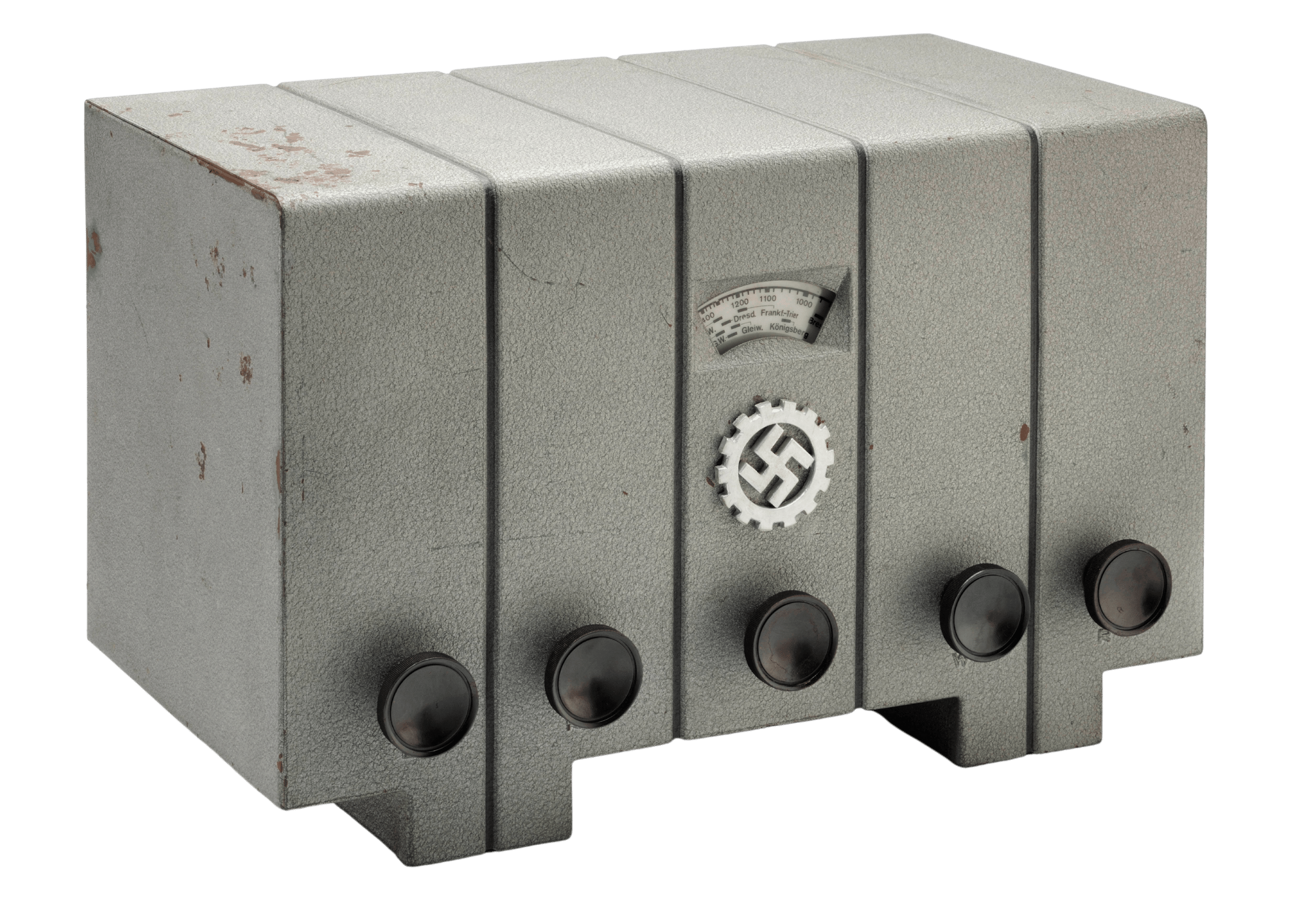 … steht er in den Vitrinen: Der Volksempfänger „VE 301“ wurde im Auftrag des Propagandaministeriums entwickelt und kam 1933 in den Handel. Alle großen Rundfunkfirmen mussten das Gerät baugleich herstellen. Im Verhältnis zu anderen Radios aus dieser Zeit war der Volksempfänger deutlich günstiger.