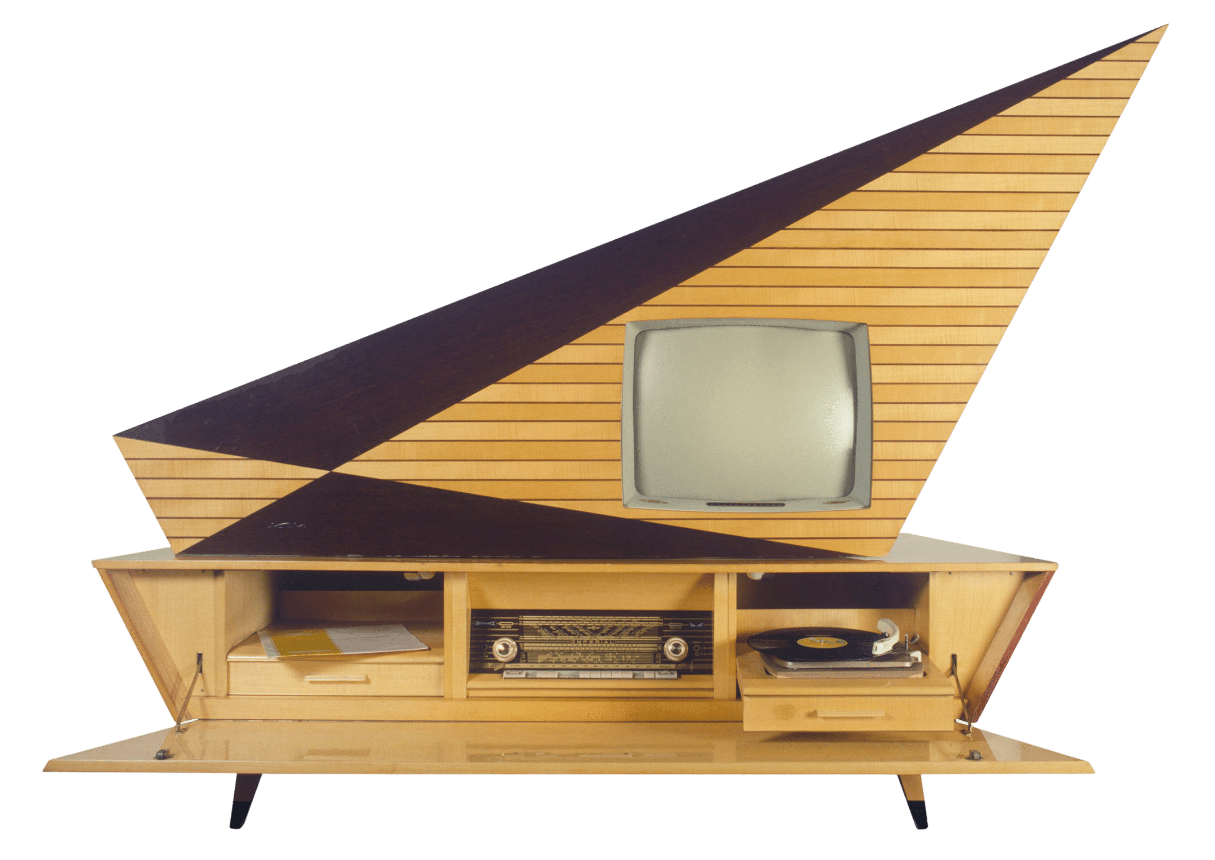 Der Phonosuper SK 4 der Firma Braun räumte mit allem auf, was bis dahin auf dem Markt üblich war: ein leichtes Gerät für den Tisch oder das Regal, kantig zwischen zwei Zargen aus hellem Holz, mit weißlackiertem Blechkorpus und einem Deckel aus transparentem Plexiglas, einem Material, das noch nie in diesem Zusammenhang zum Einsatz gekommen war und dem Gerät zu seinem märcheninspirierten Zusatznamen verhalf: „Schneewittchensarg“.